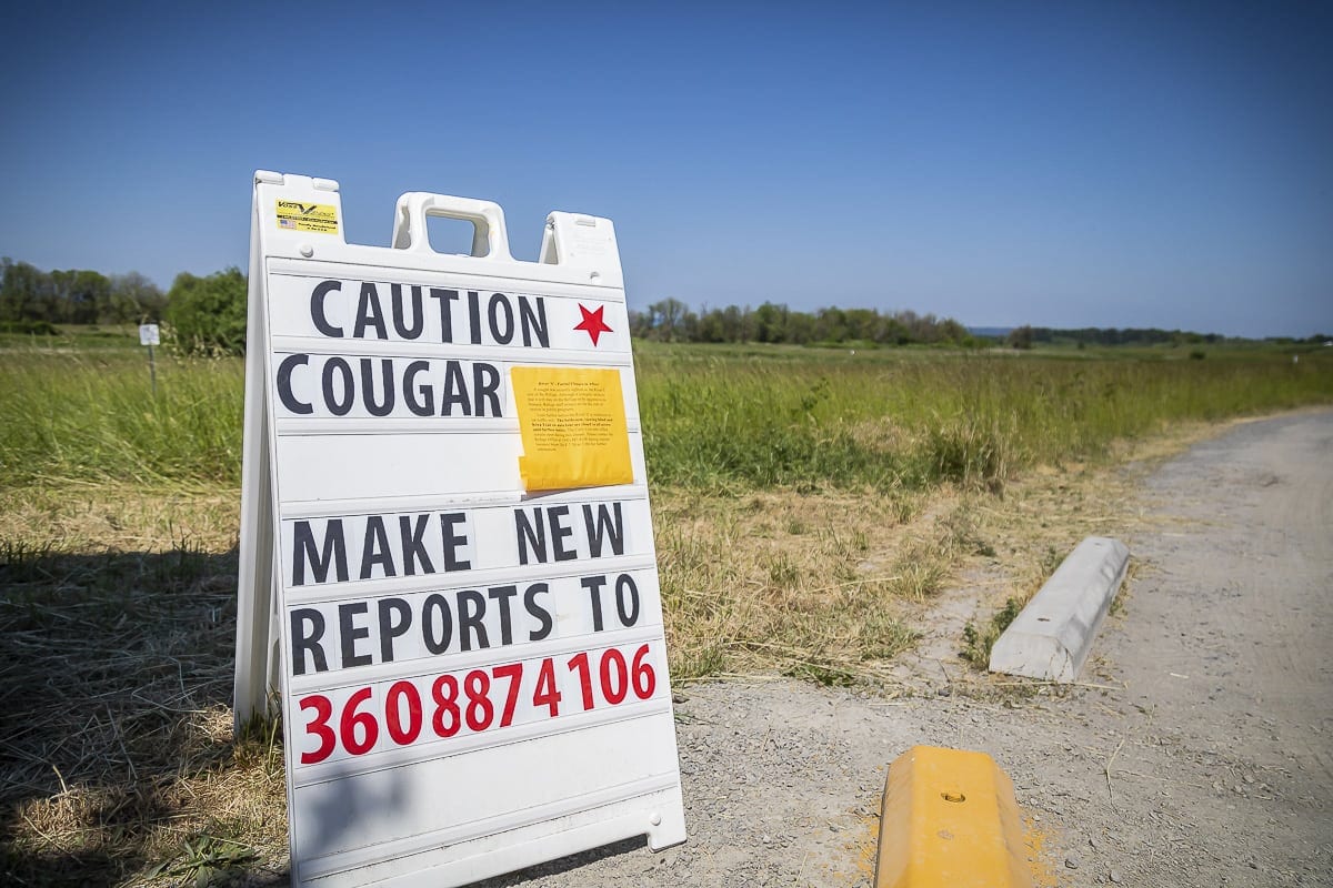 Craig says Fish and Wildlife officials told her that, if this cougar is spotted again, they would likely try to trap it and relocate it somewhere else. Cougar sightings have become more frequent in the area over recent years, as humans continue to expand into their traditional territory. Last month a possible cougar sighting at Ridgefield National Wildlife Refuge prompted them to post warning signs for several days, and close some parts of the park.