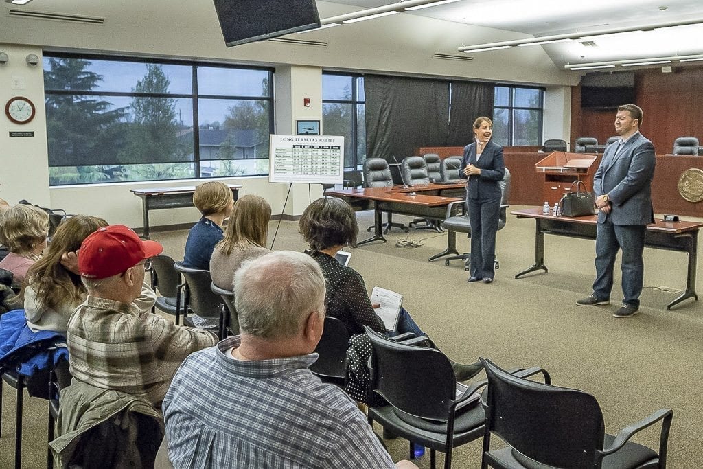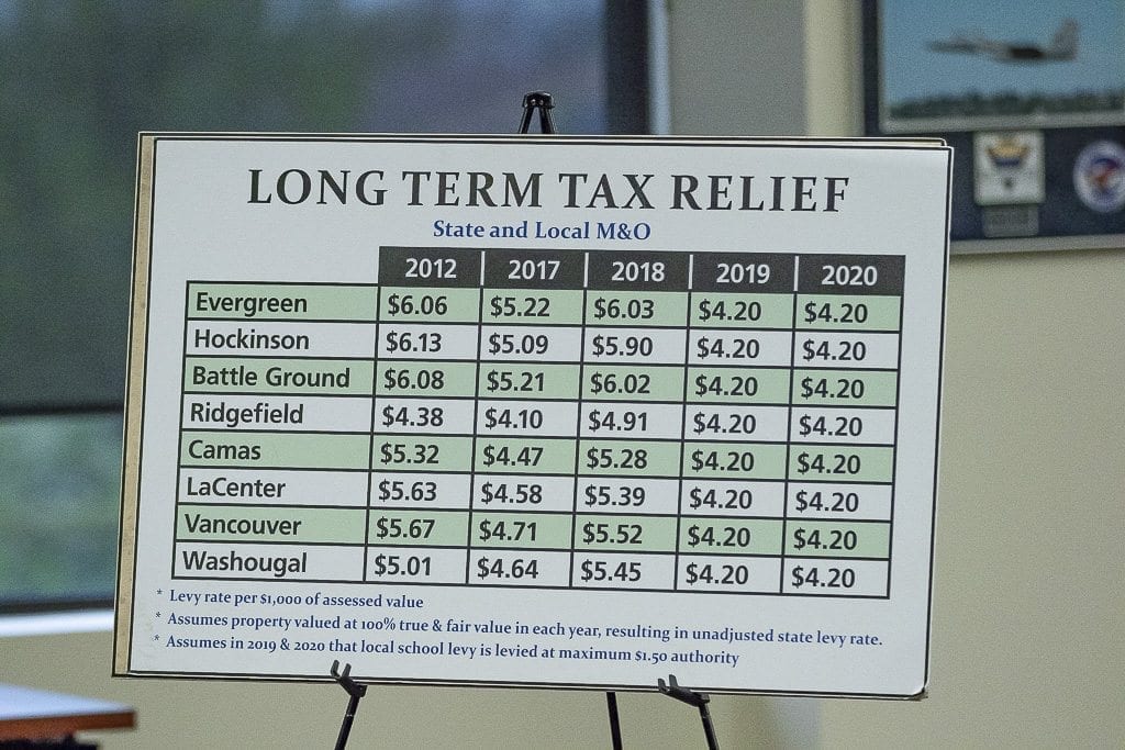 Rivers said she was “horrified” by her own tax statement, a claim that seemed to be backed by her husband, who pulled up their statement and began reading down the list of about 15 taxing districts and governments that demand money due to the location of their property in La Center.