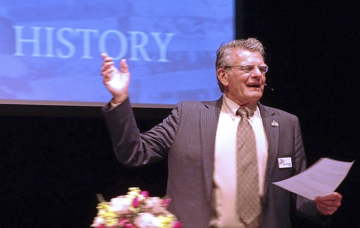 RIDGEFIELD — Mayor Ron Onslow, in perhaps his last official act as Mayor of Ridgefield. addressed a packed theater at Ridgefield High School Thursday at the annual State of the City Address.