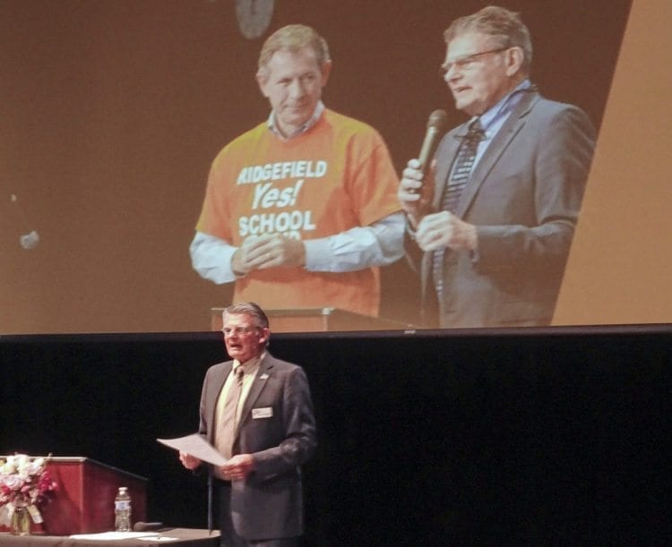 Onslow ended his presentation by introducing his wife and family, members of the city council, City Manager Steve Stuart, and his successor Don Stose, who talked about communicating with the city, local media and social outlets concerning Ridgefield, and encouraged residents to both come to city council meetings and call the city with questions, suggestions or comments.