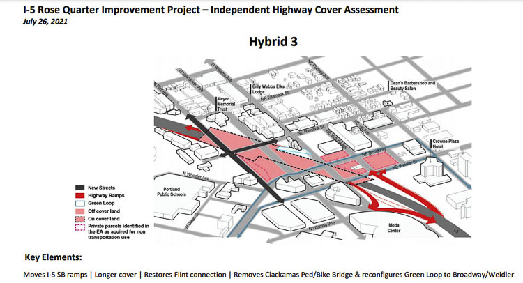 Details within the governor’s announcement indicate the following. It moves I-5 southbound ramps; it has a longer cover; it restores the Flint connection; it eliminates the planned Clackamas Ped/Bike bridge and reconfigures Green Loop to Broadway/Weidler.