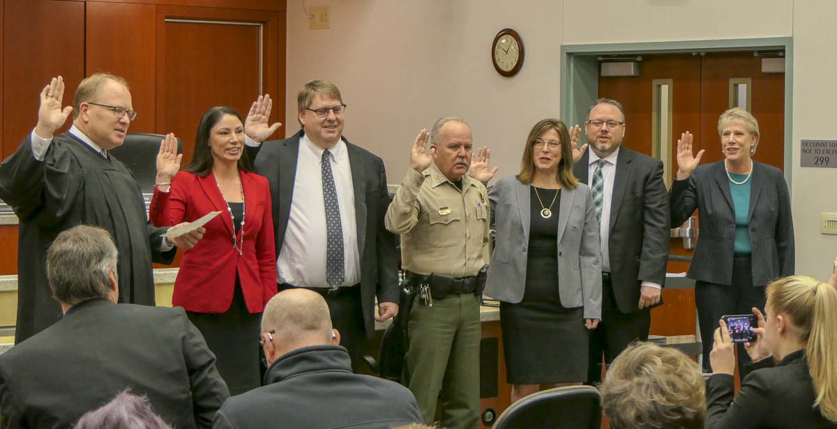 Also being sworn in were District 2 County Councilor Julie Olson, winning her second term, County Sheriff Chuck Atkins, who ran unopposed for a second term, County Clerk Scott Weber, entering his third term, and County Assessor Peter Van Nortwick.