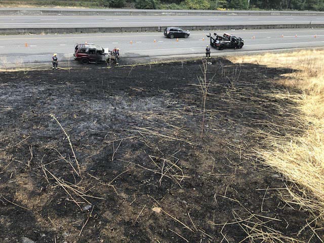 At 6:50 p.m. Wednesday (Aug. 19), three Vancouver Fire Department (VFD) engines and a battalion chief were dispatched for reports of an SUV on fire on Highway 14 west bound under Interstate 205.