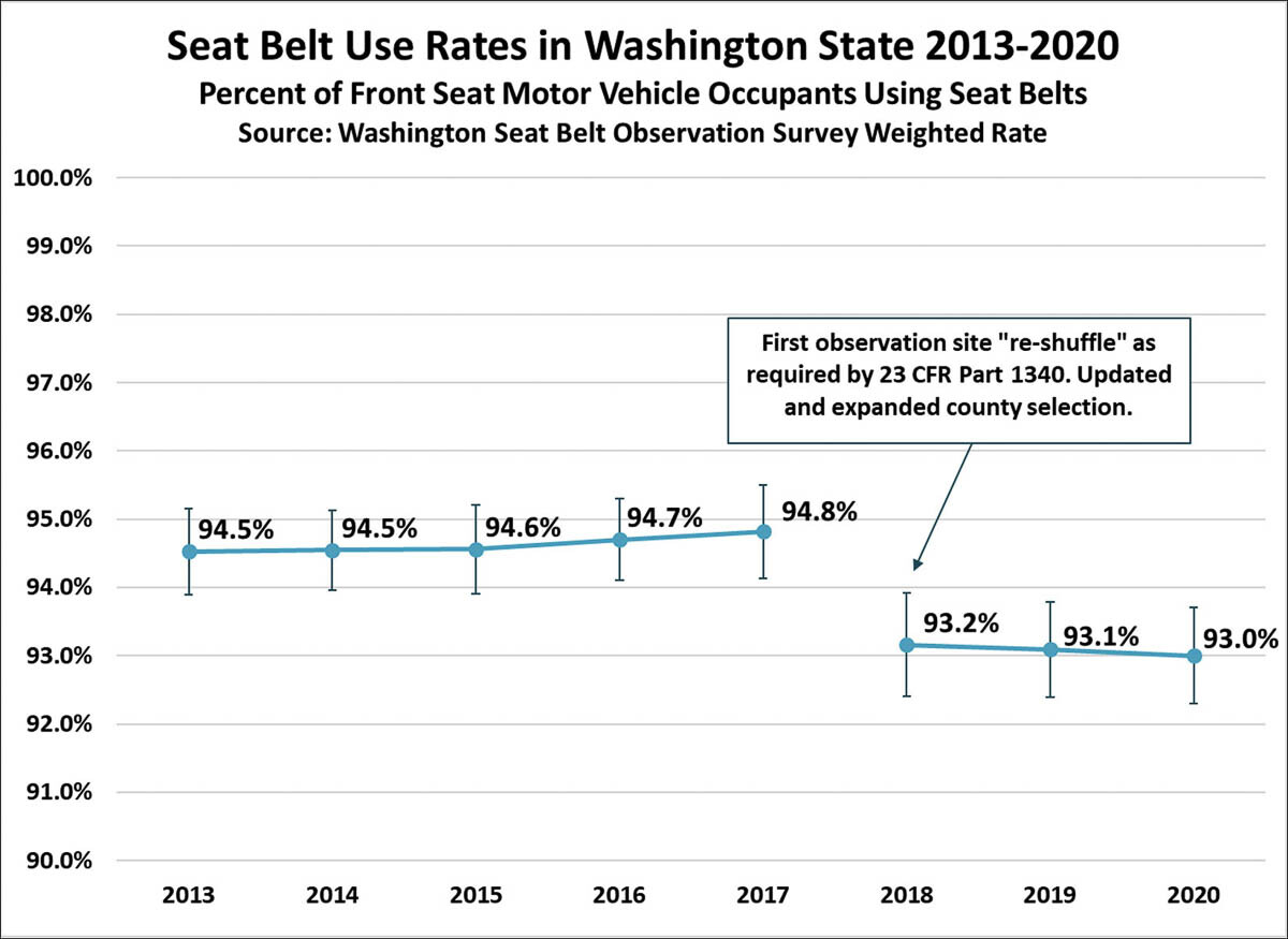 According to Target Zero, Washington residents do use their seat belts at a high rate — 93 percent of us in 2020. However, of the 7 percent who do not, many of them are young drivers. In fact, drivers aged 16 to 25 have the lowest seat-belt use rate of all ages of drivers involved in fatal crashes.
