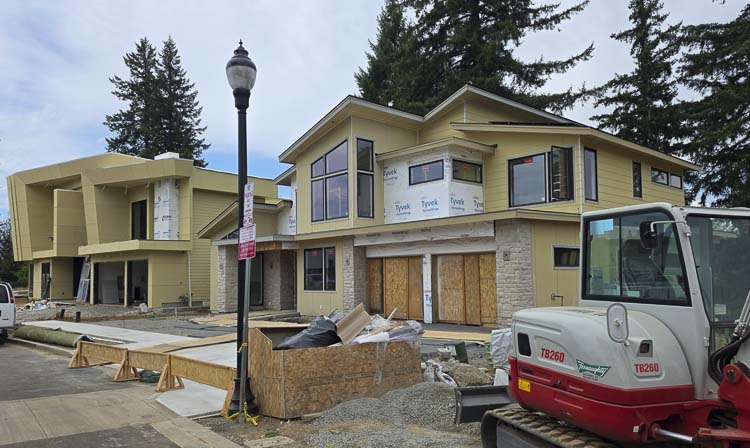 Crews are busy completing the six new homes that will be on display for the parade at The Nines at Camas Meadows (4700 NW Camas Meadows Drive.)