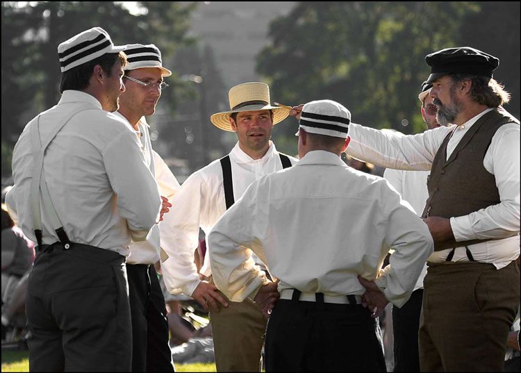 Baseball (then called “base ball”) in the 1860s was a very different game than it was today. The “hurler” — today’s “pitcher” — threw to the striker’s (batter’s) liking, and there were no called or non-swinging strikes. Players wore no gloves, and could catch the ball on one bounce for an out. The game was played with an extensive code of conduct to ensure that all would play in a “gentlemanly” manner. For example, neither sliding into nor stealing bases were allowed. Along with the costumed players, volunteers will portray well-dressed “cranks” (base ball fans from the 1860s). Between innings, patriotic music from the 19th century will be played by the Vancouver Community Concert Band directed by Erin Hanson.