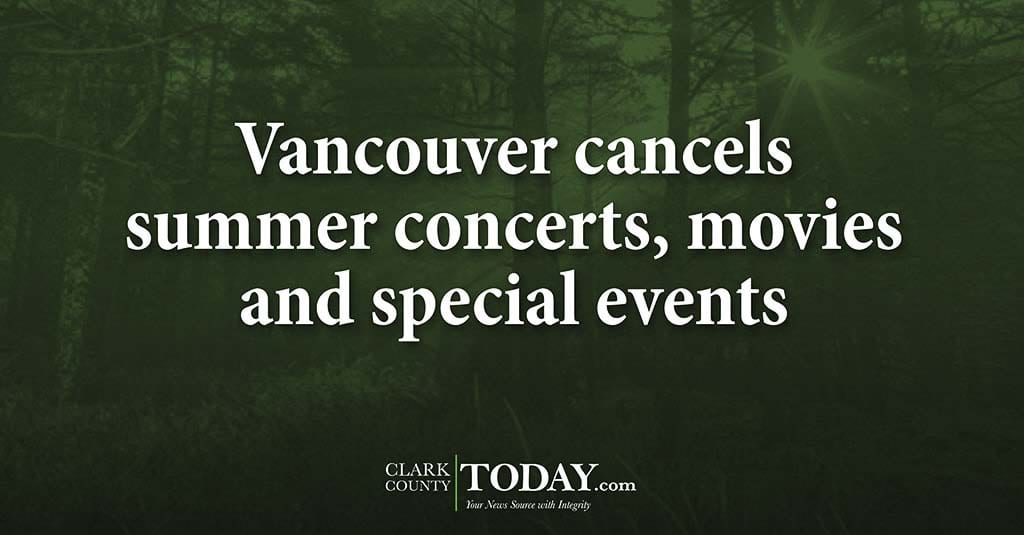 The cancellation includes Vancouver Parks and Recreation’s “Friday Movies in the Parks,” the “Six to Sunset” and “Noon Rhythms” summer concert series at Esther Short Park, and the “Sunday Sounds” concerts at Columbia Tech Center. Festivals and events hosted by outside organizers also will not be permitted through Aug. 31.