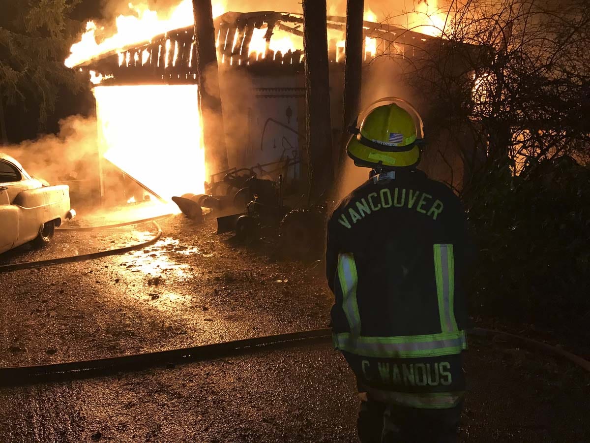 Fifteen firefighters and two battalion chiefs on three fire engines and a water tender from Vancouver Fire, an engine from East County Fire and Rescue and two water tenders from Clark County Fire District 3 were used to battle the fire. Clark County Sheriff’s deputies provided traffic control on 58th Street.