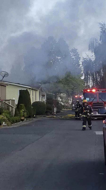 At 9:50 a.m. Tuesday, three engines and a ladder truck from the Vancouver Fire Department were dispatched to 13217 NE 59th Street, Space 126 at the Skyridge Mobile Estates for the report of a house fire. Dispatch notes indicated that someone on scene had gone inside the burning residence and not come out.