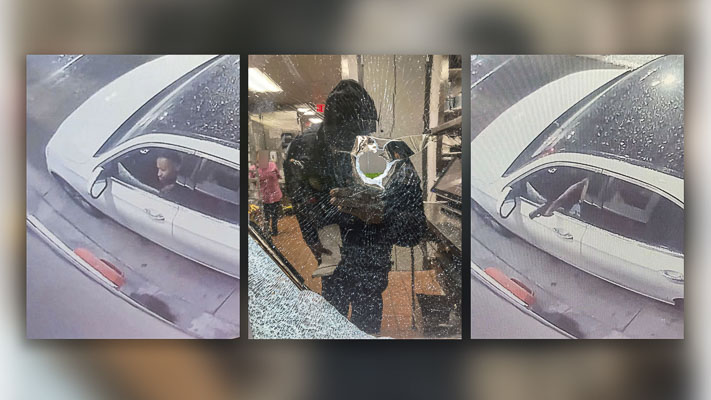 The suspect pulled out a gun and fired a shot through the drive-through window of a McDonald’s restaurant