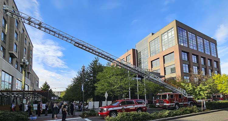 With Vancouver Fire Department vehicles parked in front of City Hall, dozens of guests listened to featured speakers.