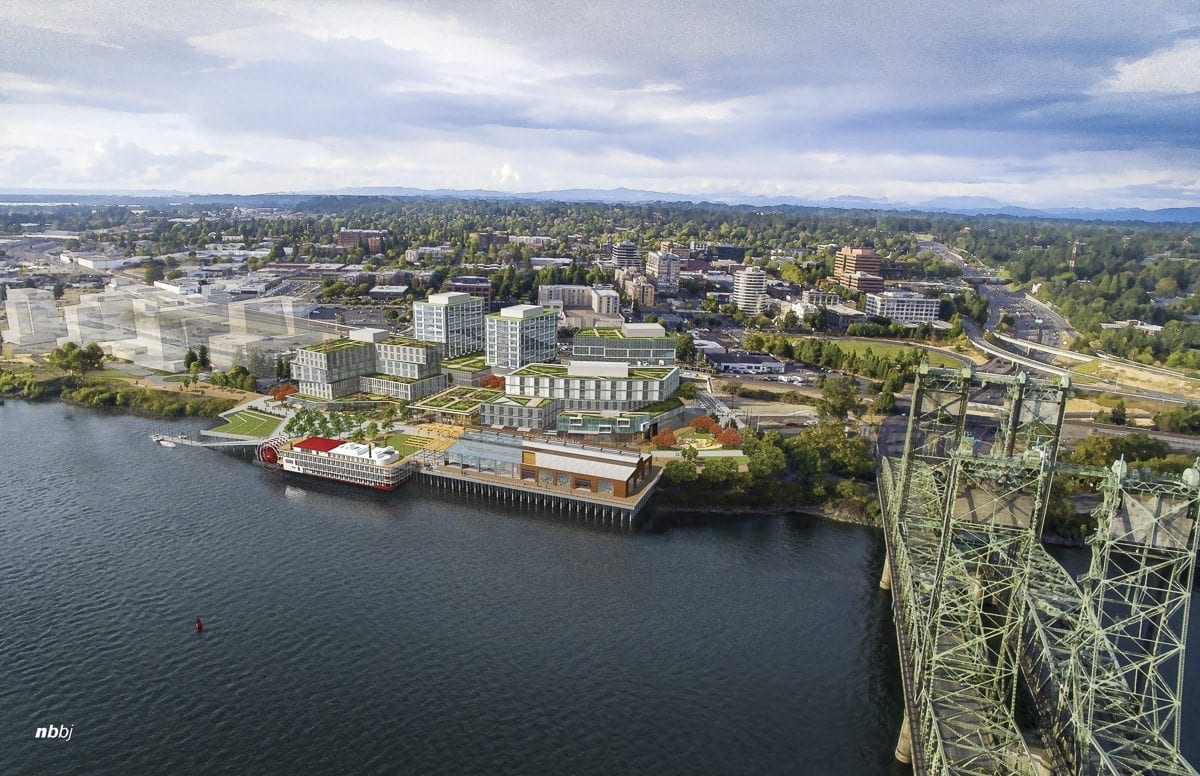 The $1.5 billion Vancouver Waterfront project will begin to wind down Phase 1 by the end of this year. It features a new 7-acre public park, 3,300 new residential units, well over a million square feet of office space, several flagship restaurants and an iconic pier that will stretch out over the Columbia River.