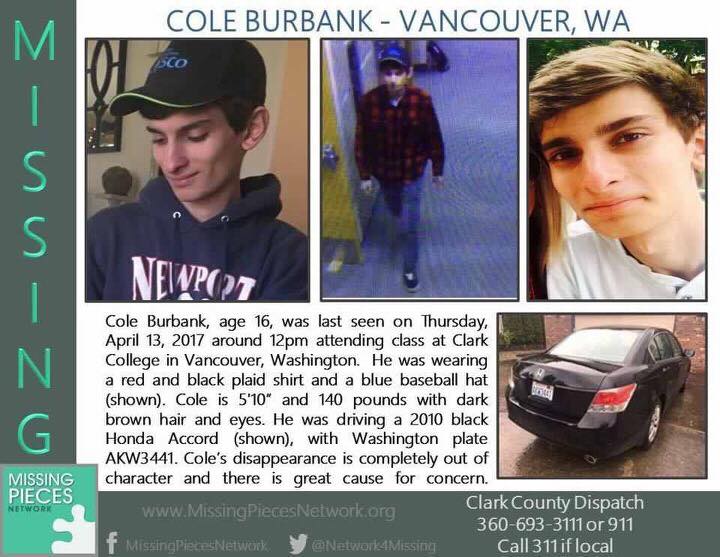 Since the 16-year-old Cole Burbank was reported missing on April 13, there’s been an ongoing, multi-agency search for him and the vehicle he was driving.