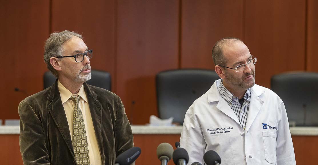The new cases are a married couple – a man and a woman both in their 80s. The couple live in separate long-term care facilities but were in close contact. Both were transported to PeaceHealth Southwest Medical Center this week. They remain hospitalized.