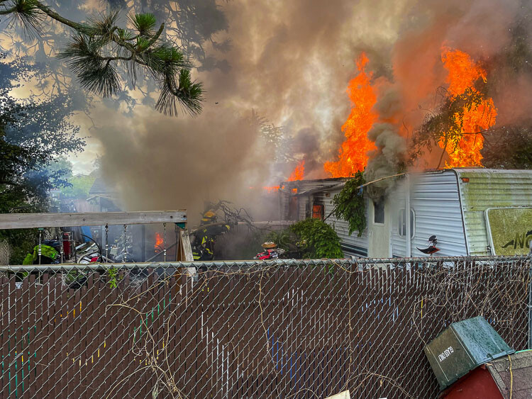 When firefighters arrived they found fire showing from the back of the home and an RV also on fire. Crews located all the occupants outside and began attacking the fires with hose lines to prevent it from continuing to spread.