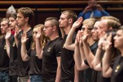 Dozens of young men and women took their oath of enlistments together at an “Our Community Salutes” event to salute future military service members.
