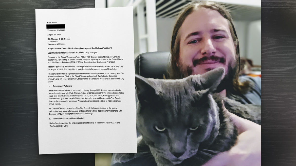 Vancouver resident Brad Erhart provides evidence that he believes ‘demands an immediate investigation into the conduct of Council Member Kim Harless’
