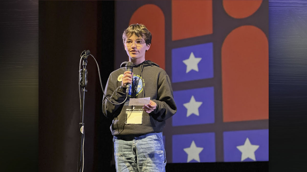 Tukes Valley Middle School student Rye Dilley offers support for Lorri Sibley for Battle Ground School Board