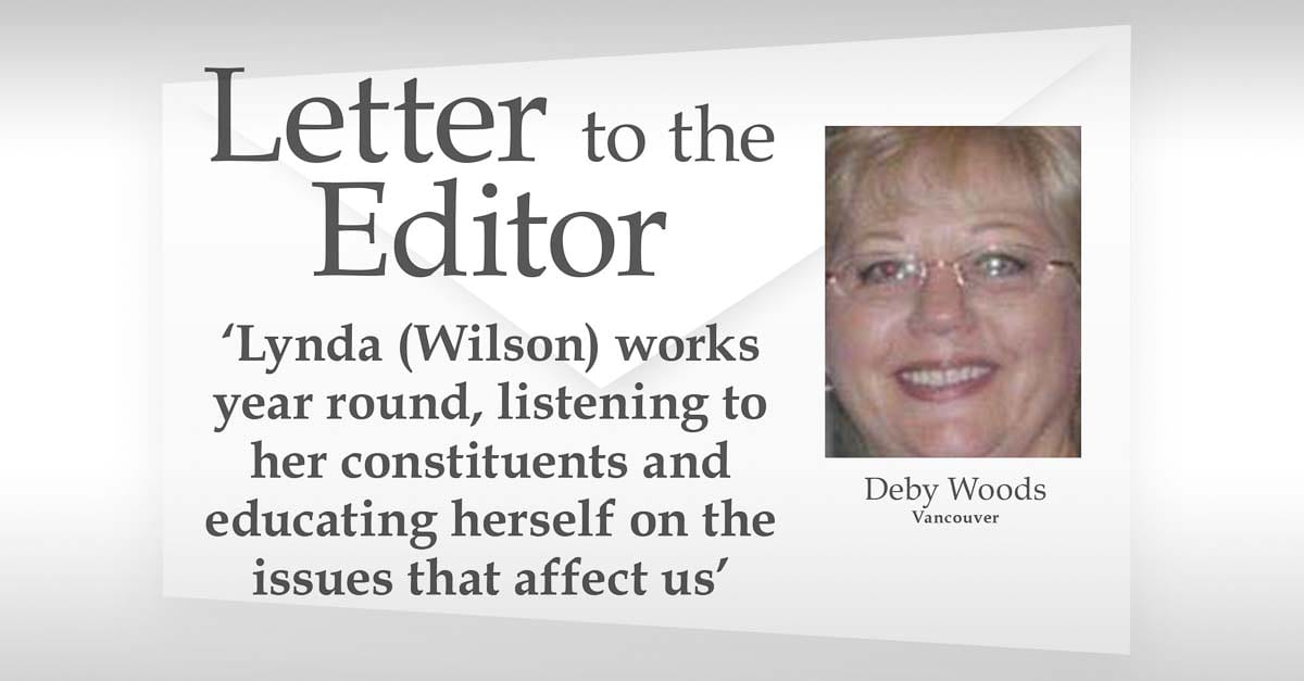 Vancouver resident Deby Woods offers her support for Sen. Lynda Wilson in the race for the Washington State Senate in the 17th District
