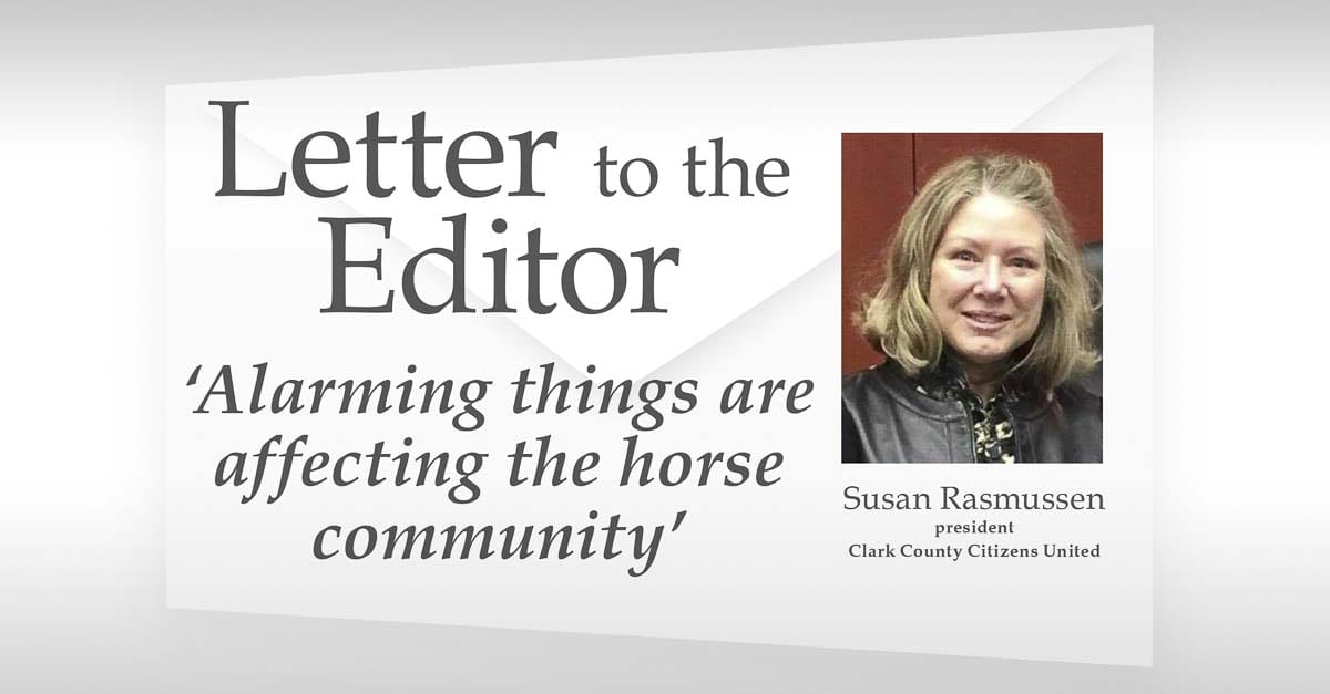 Alarming things are affecting the horse community. These items are contained in the Equine Plan of the Rural Chapter, Clark County Comprehensive Growth Plan. The items appear innocent enough, but they easily lead to widespread changes, regulations, and expensive costs for horse owners and equine facilities. The changes do nothing to protect established facilities, nor encourage new growth for this hearty community. What does the county hope to gain by imposing restrictive regulations, high permitting fees and added costs?