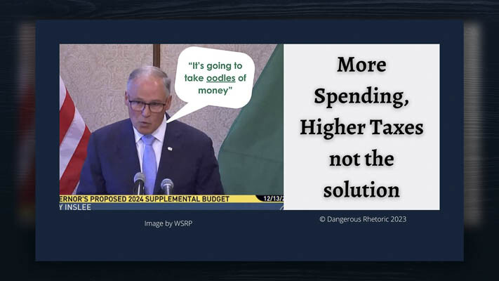 Governor “Grinchlee” is planning on spending and spending and spending, which means that taxes are going to continue to go up, up, up. According to an article in The Center Square Washington, “The governor’s supplemental budget would add $2 billion in spending to the $69.8 billion operating budget the Legislature passed during this year’s session.” I especially appreciated this passage: “There are some numbers attached to it, but the numbers aren’t important,” Inslee said at a press conference announcing his supplemental budget. “What’s important are the lives. There’s a lot of lives that are going to be improved because of the proposals that we are making.”