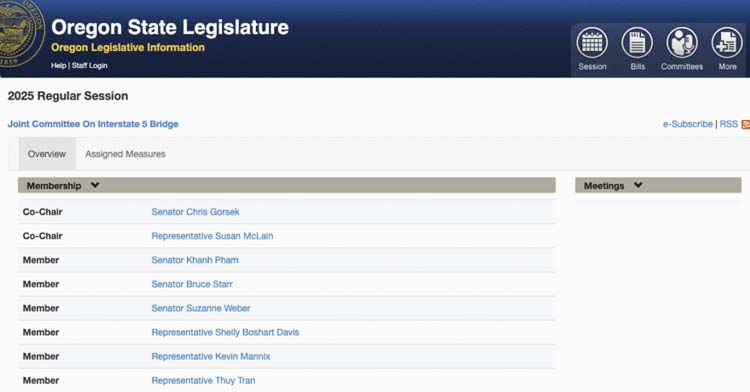 The Oregon Legislature appointed a “Joint I-5 Bridge Committee” when it convened in January. The Committee has never met during this session of the Legislature. There’s simply a big empty space on the webpage for the committee under “Meetings”