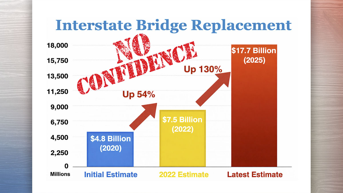 Oregon and Washington legislators should stop the financial bleeding on this out of control project. The lack of truthfulness by IBR officials warrants a vote of no confidence in the program. The money’s not there and citizens are feeling over-taxed in both states.