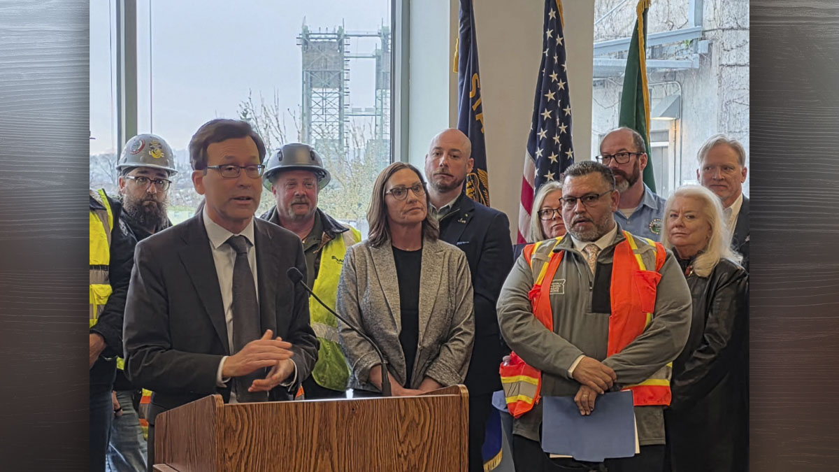 Ferguson said replacing the 109-year-old bridge is essential for public safety, the economy, and jobs. It’s the same thing Gov. Jay Inslee told us seven years ago when they relaunched the Columbia River Crossing 2.0. Ferguson emphasized that more than 140,000 vehicles cross the bridge each day and said the current bridge is vulnerable in an earthquake because of timber piles in loose sand.