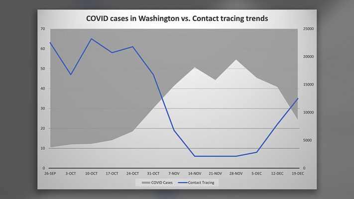 In the state’s contact tracing program, staff from the Washington State Department of Health (DOH) attempt to contact people who have tested positive for COVID. Staff provide patients with information and help determine who they have been near in the past few days. It is voluntary and people are not required to respond, but those I have spoken with who received a call say it was helpful.