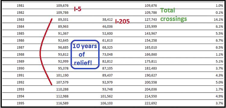 Traffic congestion was eliminated for a decade. Note the “plan” was for the two states to immediately begin building a westside bridge and transportation corridor, to be completed by 1990. The two states abandoned that plan when Oregon began creating MAX light rail instead. The western bypass would have relieved I-5 congestion, once again.
