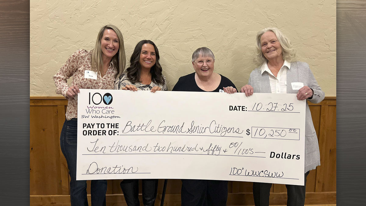 “We are deeply grateful to the women of 100 Women Who Care for recognizing the importance of supporting our senior community,” said Sharon Wodtke, president of Battle Ground Senior Citizens. “This generous contribution will help us continue providing programs that keep seniors active, connected, and valued.”