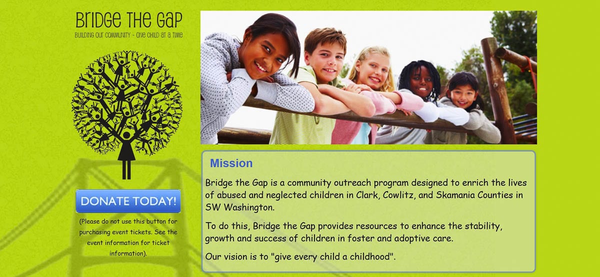 The organization, which started in 1999, just wanted to “give every child a childhood,” according to its website. Bridge the Gap helps children in Clark, Cowlitz and Skamania counties.