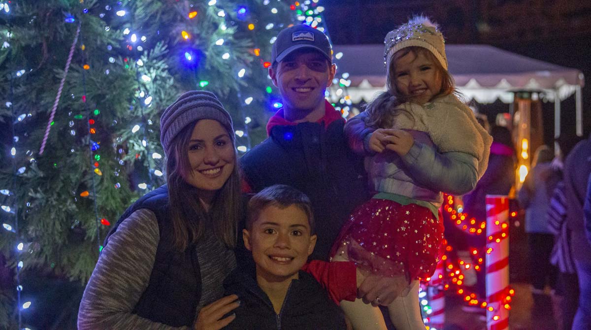 Bryan Rhoads (center) and his wife Erica (left) pose for a photo at the annual Ridgefield Christmas tree lighting with their two children, Tenley (right) and Tristan (lower left). Photo by Bailey Granneman