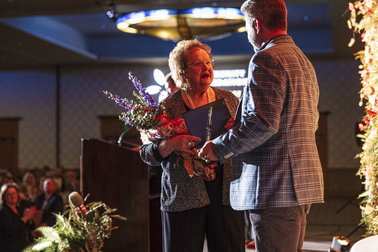 The event kicked off with former president Jennifer Rhoads saying farewell to the organization she served for nine years. In that time, the organization and its supporters granted more than $100 million to nonprofits and increased charitable assets at the Community Foundation five-fold. President Matt Morton then took to the podium and honored Rhoads’ contributions by gifting her with a blanket, a custom he draws upon as a member of the Squaxin Island Tribe to mark major events.