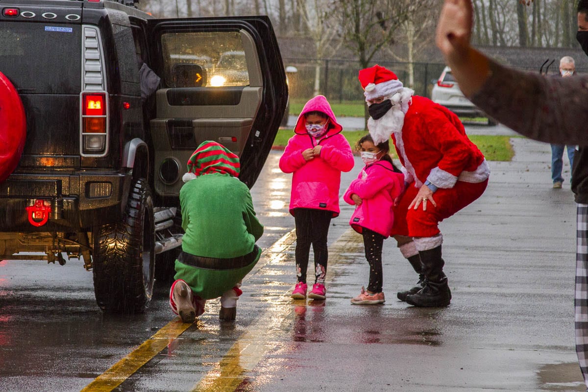 At North Fork Elementary, students lined up to see the show. “The turnout was better than expected with traffic out to the street for nearly the full two hours we ran the event,” said Pearl. “Our students were full of smiles and so excited to see their students.” Yale Elementary School even had a pet goose show up who wanted to meet Santa.