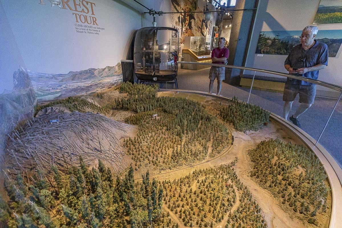 - Inside the main building there are large scale models of the surrounding topography, as well as broken trees, a seismograph, a large scale theater playing a documentary, and more