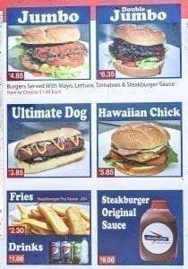 The Steakburger on the Go menu consists of hamburgers, fries, hot dogs and chicken burgers, and Condon said she tried to accommodate any special requests. She said they have a lot of options that people can add to burgers or hot dogs, such as jalapenos, onions, eggs, etc. She said they also make chili often, meaning people can order chili dogs or chili burgers.