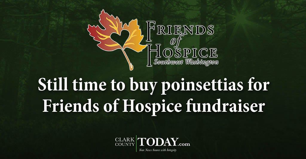 One has until midnight Tuesday to order poinsettias online from the Friends of Hospice Southwest Washington. (https://friends-of-hospice.org/poinsettia-sale/)