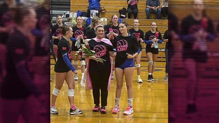 At La Center volleyball this year, Pink Night struck closer to home. We shared the story of Kylee, now a freshman, this summer when she was named Miss Teen La Center. Kylee’s inspiration is her mom, battling breast cancer. Alexis had just recently finished chemotherapy treatment.
