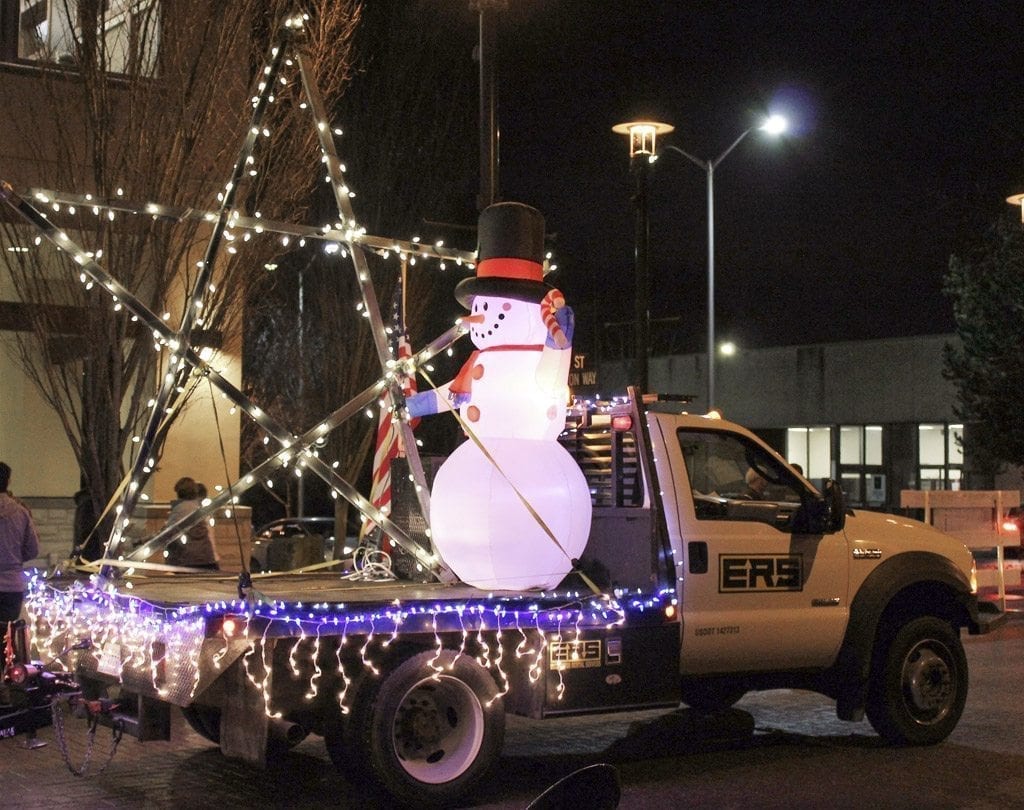 Led by Washougal police officers and firefighters — who rolled by in lighted police cruisers and firetrucks — the parade participants amused the crowd with festive, well-lit floats for more than half an hour. Around 6:30 p.m., the festival shifted into Washougal’s Reflection Plaza and ended with the lighting of the city’s Christmas tree.