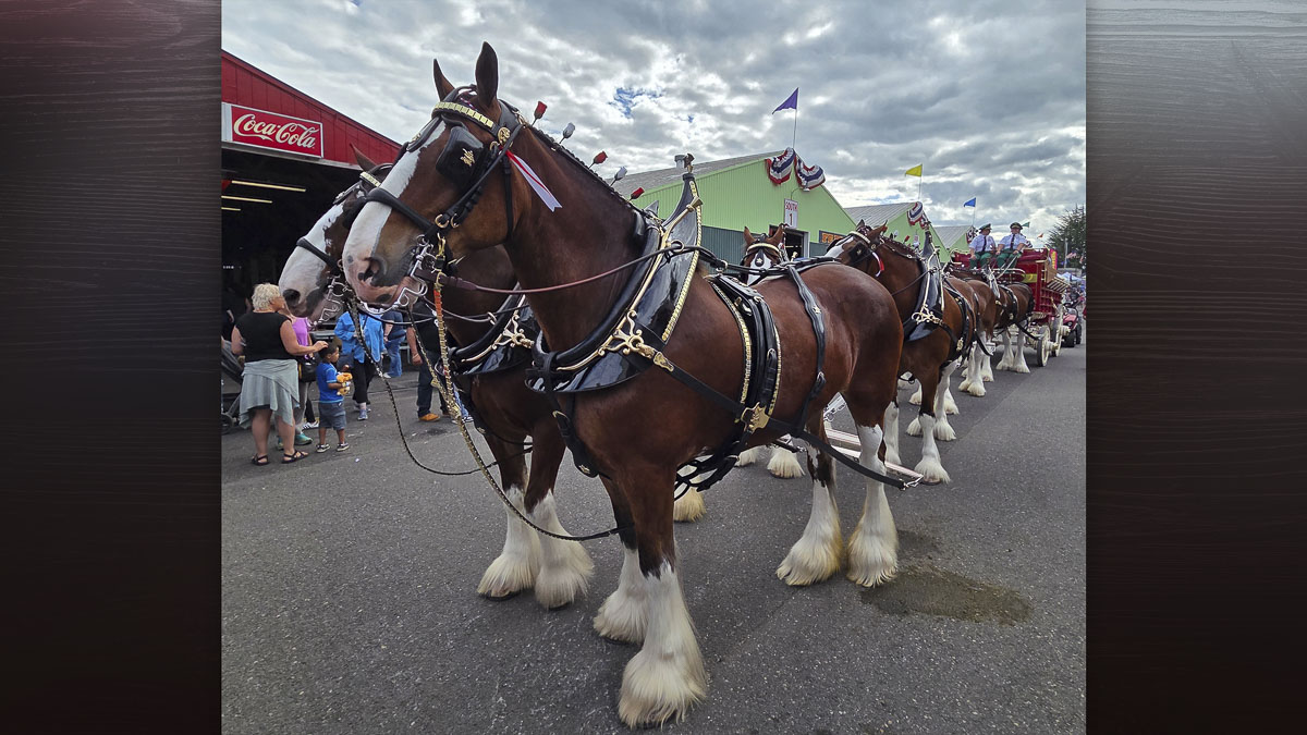 The majestic Budweiser Clydesdales, who wowed the crowd on Thursday, are back on parade beginning at 11 a.m. Sunday. Come see eight gentle giants, and King the Dalmation, up close and personal.