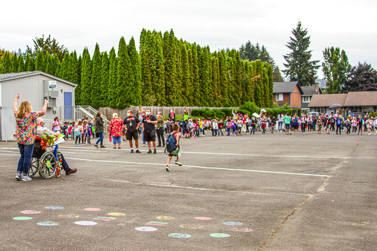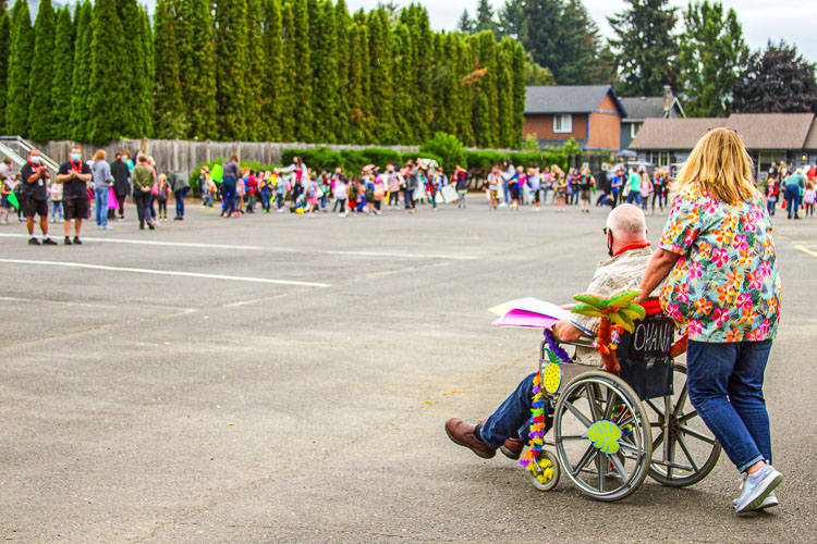 Students and staff at North Fork Elementary School recognized the retirement of head custodian Ed Sorensen by holding a Celebration Tunnel for him. Students clapped and cheered as he was pushed in a decorated wheelchair by Principal Denise Pearl. Students also created special cards thanking him for being their custodian and congratulating him on his retirement.