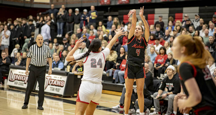 The Papermakers went on a 16-0 run to go up 21-8. It seemed like every time Camas missed a shot, the Papermakers would get an offensive rebound and score. The Camas defense suffocated Union’s big-time scorers for much of the contest.