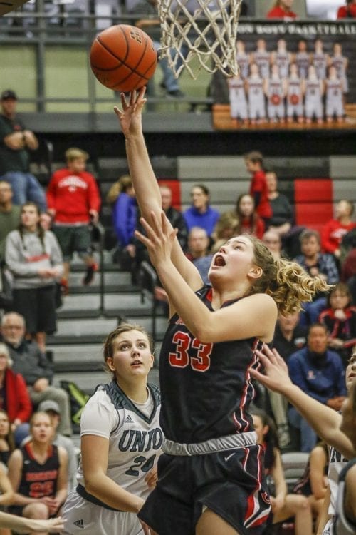 Notes: Mason Oberg and Rebekah Barney each scored eight points to lead Union. … The Titans fell to 4-2 in league play and remain in second place. … For more on this game, and other notes from girls and boys basketball, check back to the site on Monday.