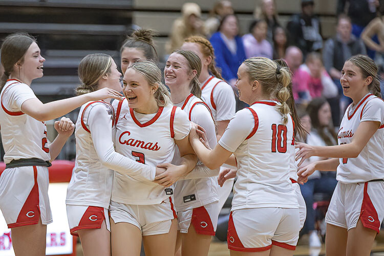 Kierra Thompson scored 14 points to lead Camas, and Riley Sanz beat the shot-clock buzzer, swishing a 3-pointer with 20 seconds left in the game to give the Papermakers a four-point lead.