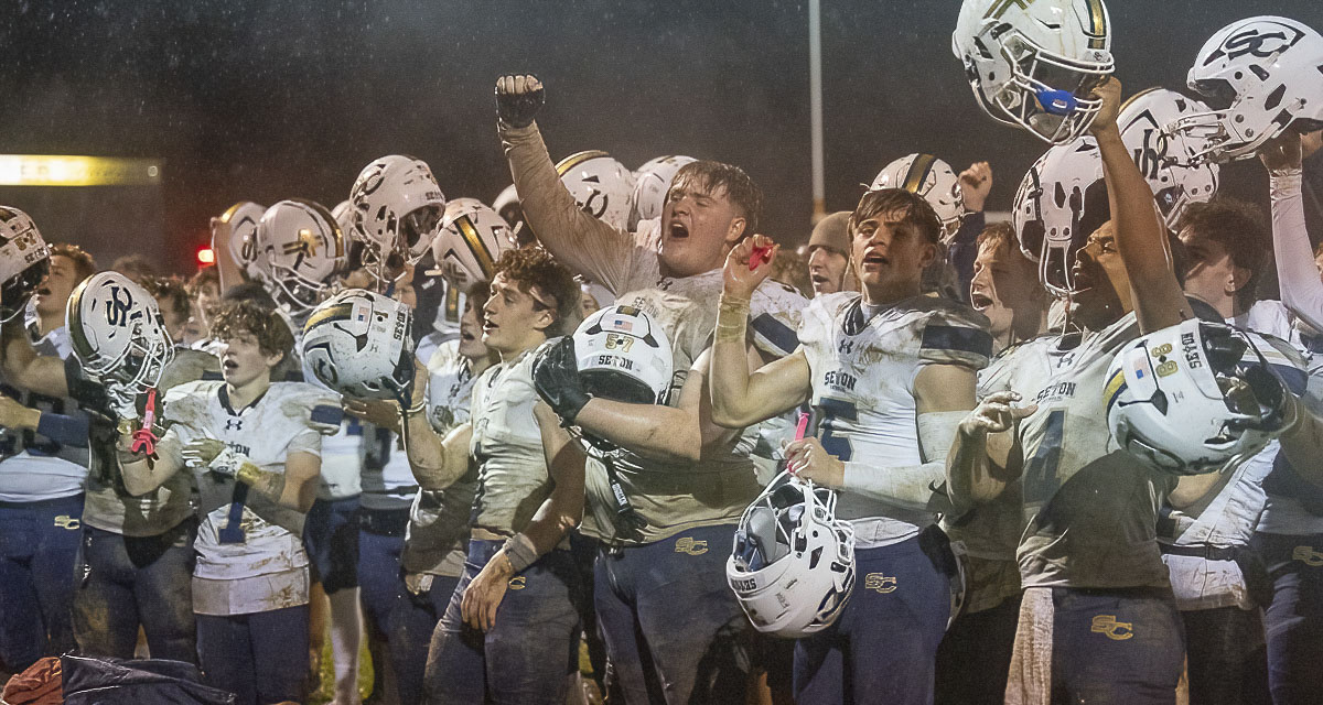 Later, after Seton Catholic recovered a Royal fumble, quarterback Kolten Gesser found Teddy Wieczorek on a touchdown pass to make it 21-all in the closing seconds of the half.