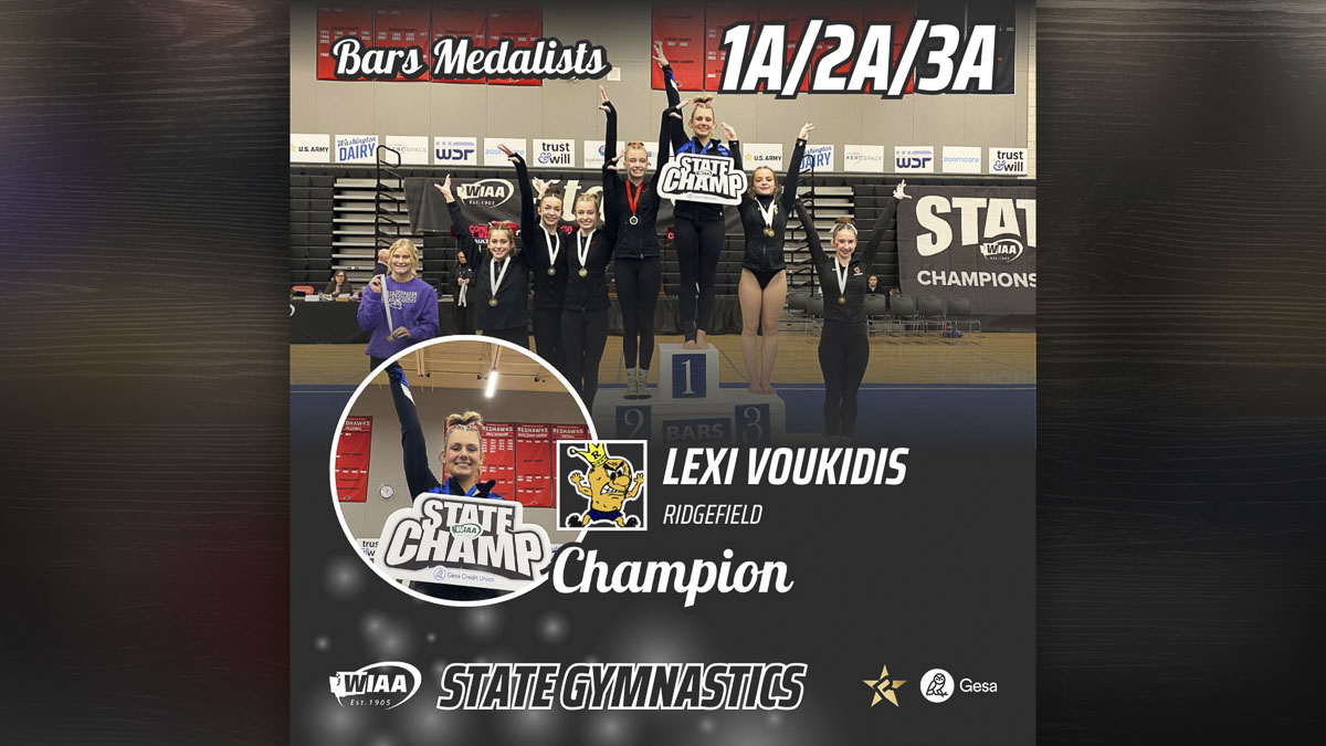 Lexi Voukidis scored a 9.225 on the uneven bars to claim the Class 3A/2A state championship Saturday at Sammamish High School.