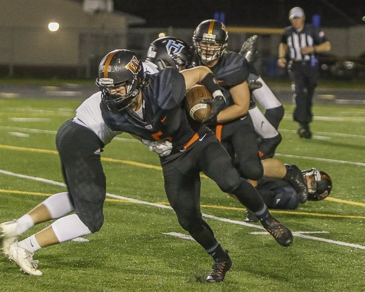 Colton Wheeler got the party started for Hockinson, bullying his way into the end zone on a 4-yard run. Racanelli added his 1-yard rushing touchdown later in the first quarter and the Hawks were on top 14-0 heading into the second quarter.