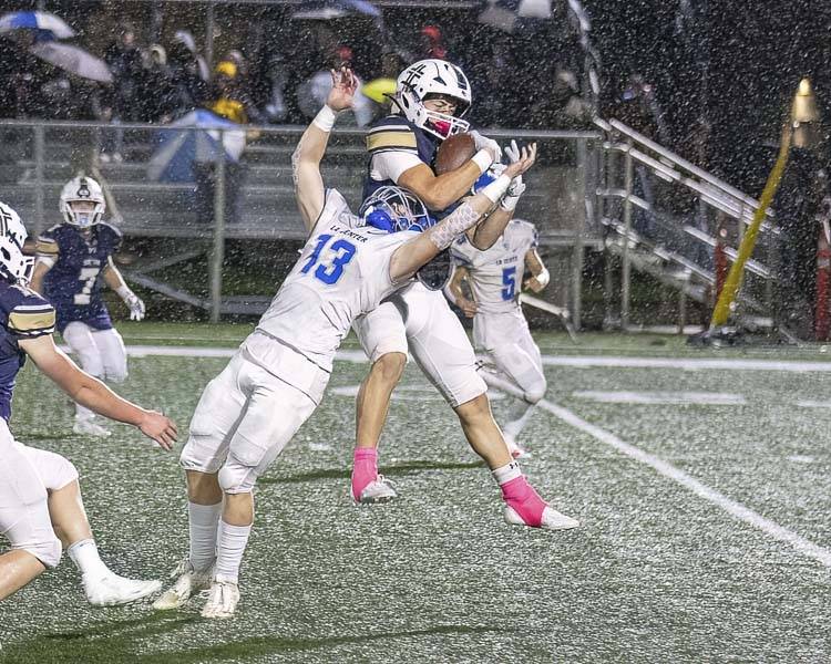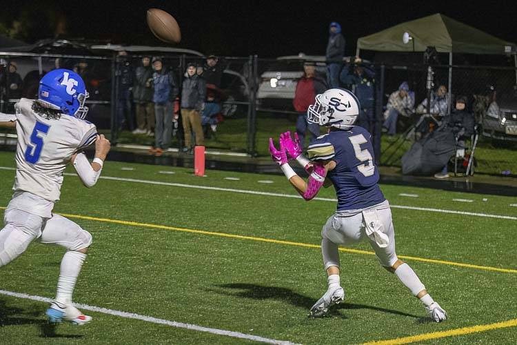 Sure enough, a long kickoff return set up the Cougars in solid position, and they drove closer to the end zone. A reverse play that led to a long pass did not fool the Wildcats, though. Coyle, playing defensive back, got the interception in the end zone to preserve the one-point La Center lead.