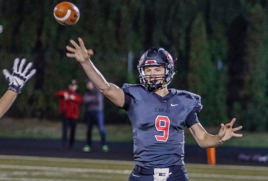 The Camas senior threw three touchdown passes to Drake Owen, and two each to Michael Matthews and Cooper McNatt. All of the scores came on Camas’ first seven offensive possessions.